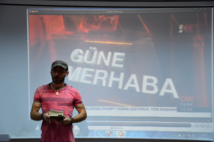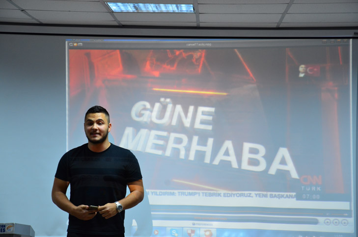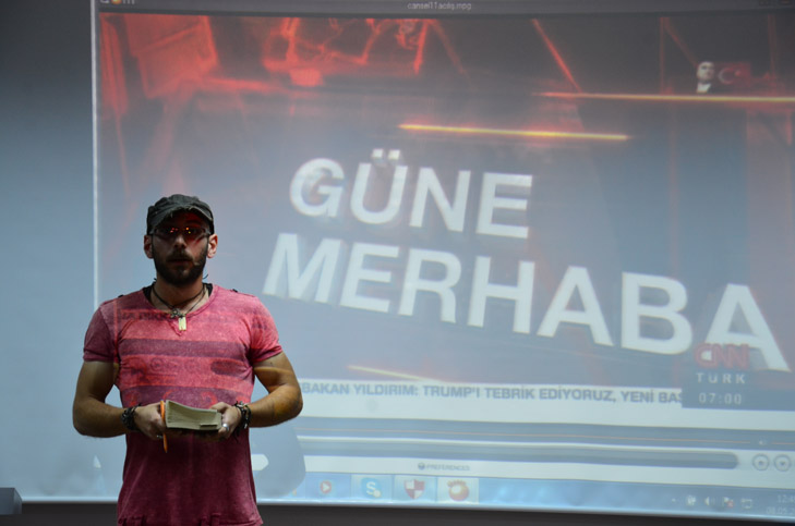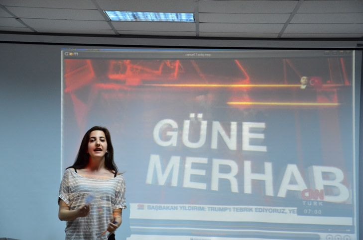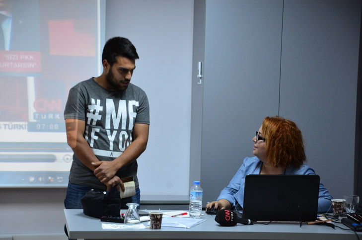 “Ahmet Hakan ile Tarafsız Bölge”, “Şirin Payzın ile Ne Oluyor?”, “İnsanlık Hali”, “Gündem Özel”, “Mirgün Cabas ile Her Şey”, “Tecrübe Konuşuyor”, “Gün Başlıyor” ve daha bir çok programın kordinatörlüğünü ve haber editörlüğünü yapmış olan Cansel Poyraz Akyol, atölye çalışmalarının ilk gününde öğrencilerle CNN Türk’ün işleyişini videolarla tanıştırdı. “Televizyon Haberciliği” üzerine deneyimlerini aktaran Akyol, “haber kanalı 24 saat yaşıyan bir yerdir. Kameramanından, muhabirine, spikerinden, editörüne, masabaşı yazıcılarına kadar hemen herkesin iyi seviyede gündemi takip etmesi gerekmektedir. Yayınların oluşum aşamasındaki iş bölümünden, yayın esnasında oluşabilecek bir dizi aksiliğin ekrana yansımaması ve akışın devamlığı buna bağlıdır”, dedi.